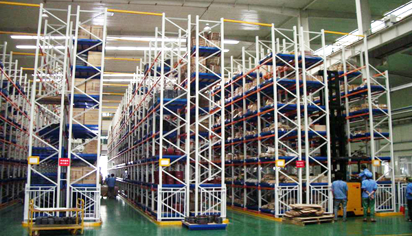 Narrow aisle pallet racking, also known as VNA shelves, specifically refers to the conventional beam racking systems used forklift three-way forklift system, compared with the conventional pallet racking system, the difference is that the roadway width of the narrow aisle pallet racking systemmuch smaller than conventional pallet racking systems, typically 1600-about 2000mm, space utilization and improved about 20%, the other must be set on both sides of the channel-oriented guard rail, thought that the three-way forklift with oriented purposes.