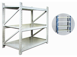 擱板式貨架稱為中量型貨架,分為中A貨架和中B貨架,都是結(jié)構(gòu)簡單拆裝方便,無需螺栓連接即可拼接而成。由萬能角鋼及鋼層板組合而成,采用標(biāo)準(zhǔn)件聯(lián)接,每層高50mm調(diào)解適用于多種貨物的存放。
